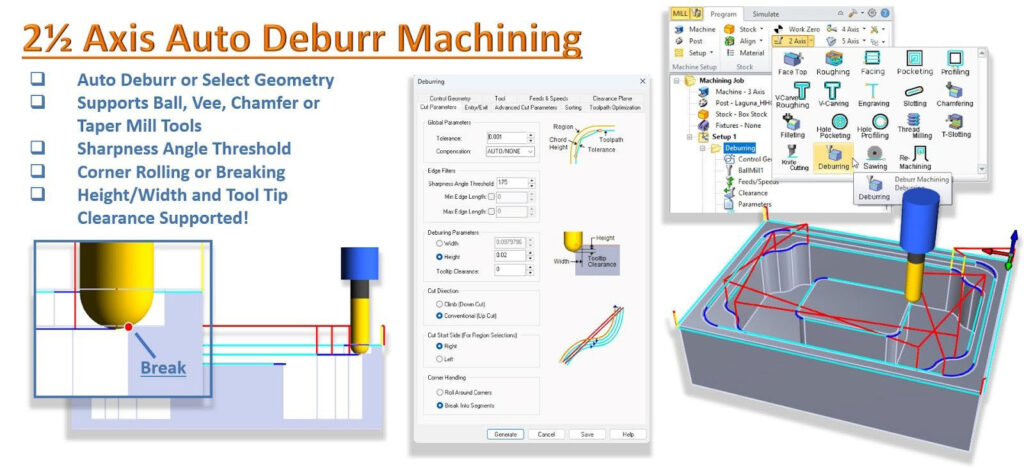 ボール、V、面取り、テーパーエンドミルに対応した自動バリ取り・面取り機能が追加され、仕上げ工程の自動化が進みました。